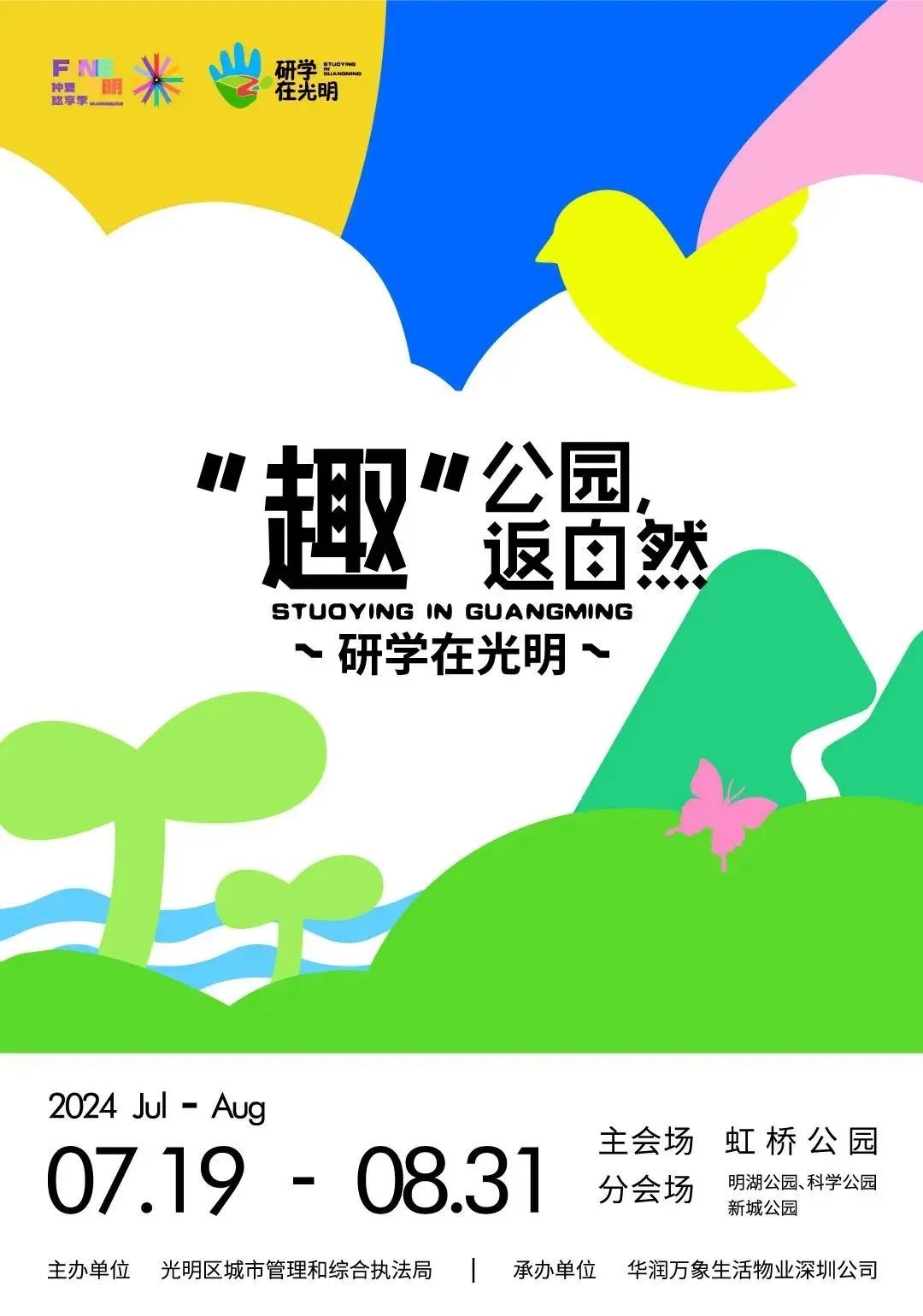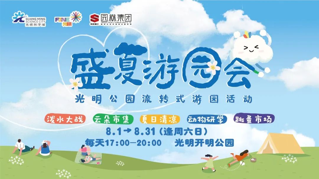 活動簡介:8月1日-31日逢周末將在開明公園舉辦流轉式游園活動,動物研學、仲夏游園、水上互動,豐富市民夏日,打造深圳首個公園集群流轉式運營活動“用公園打開光明生活”
