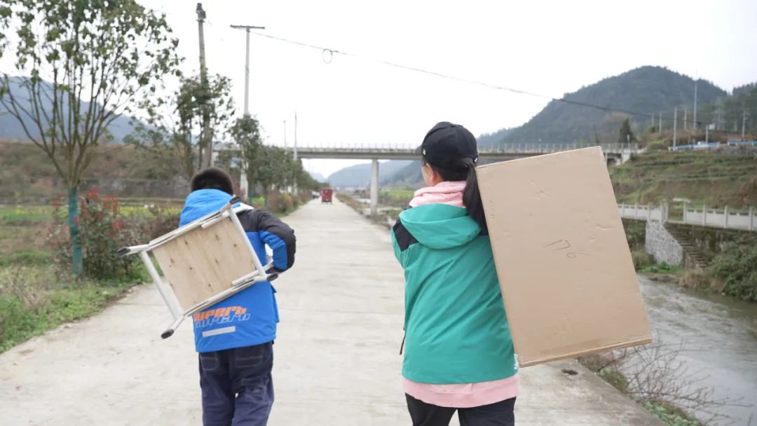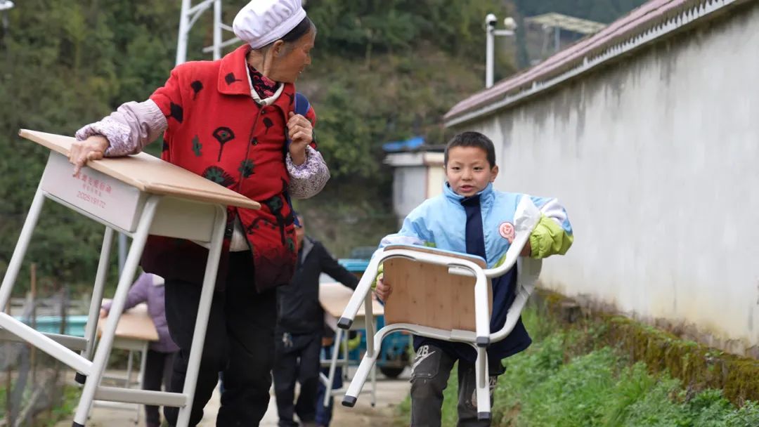 發放現場,孩子們如獲至寶地將書桌扛了起來,清脆的笑聲回蕩在山間。“我有自己的書桌啦!”三年級學生小偉撫摸著嶄新的小書桌,在小書桌發放儀式現場興奮地跳起來。
